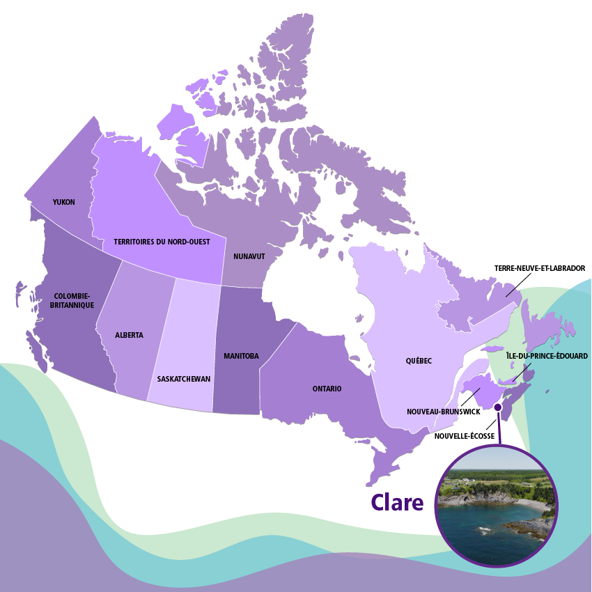 Clare est une communauté incroyable, riche en culture et en patrimoine. Une petite communauté où on a la chance de s’épanouir en français. Étant majoritairement francophone, c’est la seule municipalité de la Nouvelle-Écosse qui offre des services dans les 2 langues officielles : le français et l’anglais.