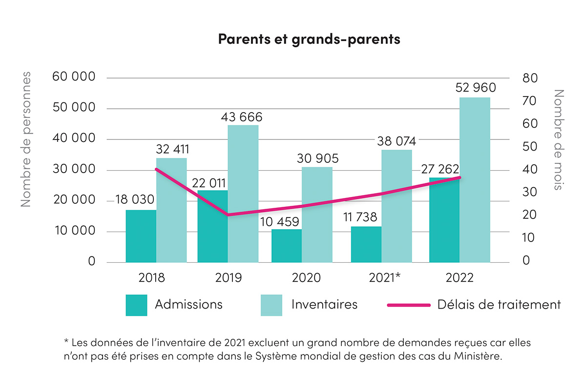 | Instructions ministérielles 53 (MI53) et 54 (MI54) : Parents et grands‑parents | Le 6 octobre 2022, de nouvelles instructions ministérielles pour l’année civile 2022 ont été publiées afin de modifier les instructions ministérielles précédentes qui sont entrées en vigueur le 1er janvier 2022 (MI50). Ces instructions accordent l’autorité d’accepter le traitement d’un maximum de 30 000 demandes reçues dans le cadre de la période de réception de 2021. Ces instructions accordent aussi l’autorité d’inviter des répondants choisis au hasard et d’accepter un maximum de 15 000 nouvelles demandes dans le cadre du processus de 2022. | 6 octobre 2022 | 6 octobre 2022 |