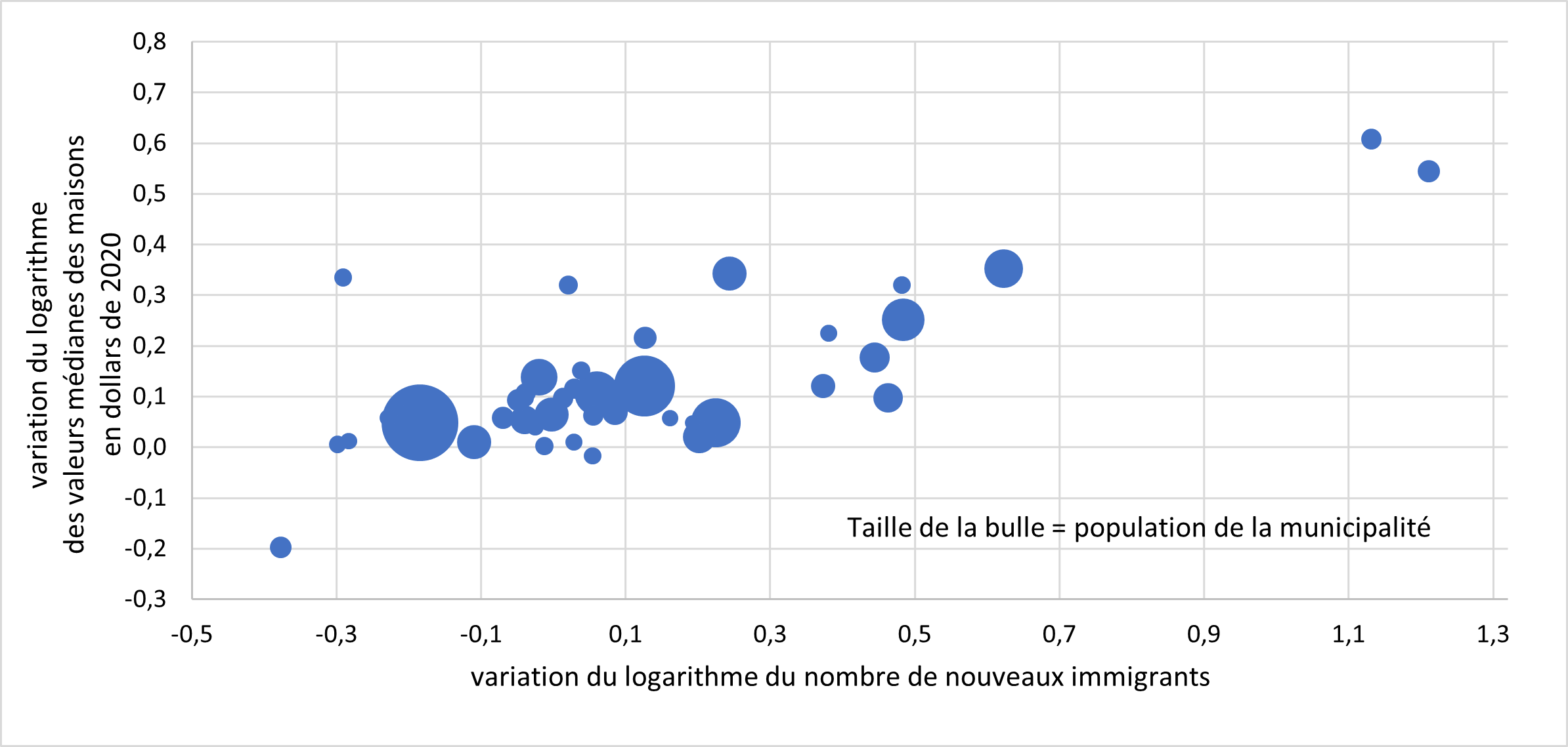 | variation du logarithme du nombre de nouveaux immigrants | variation du logarithme des valeurs médianes des maisons en dollars de 2020 | Population de la municipalité |