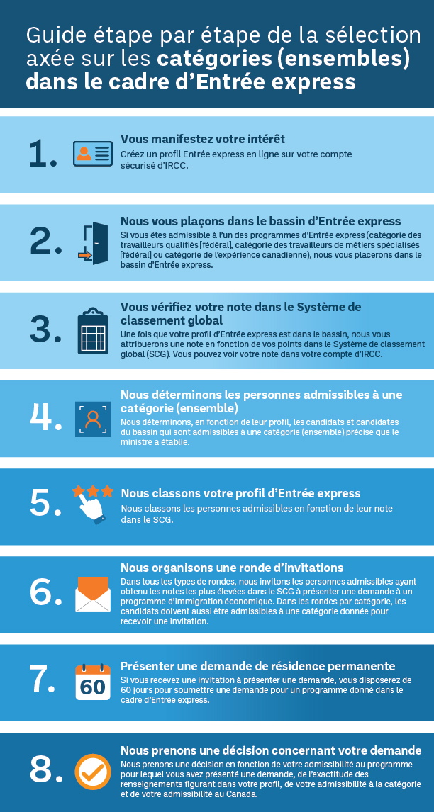 Ce guide étape par étape montre comment la sélection axée sur les catégories (ensembles) diffère du processus actuel d’Entrée Express et les étapes qui demeurent inchangées.