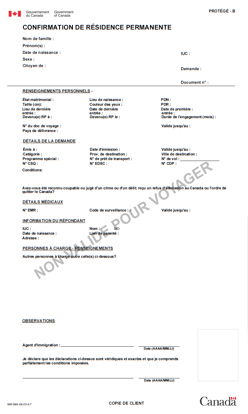 Une fois rempli, votre document de CRP est valide comme preuve du statut de résident permanent au Canada jusqu’à ce que vous obteniez votre carte de résident permanent (carte RP).