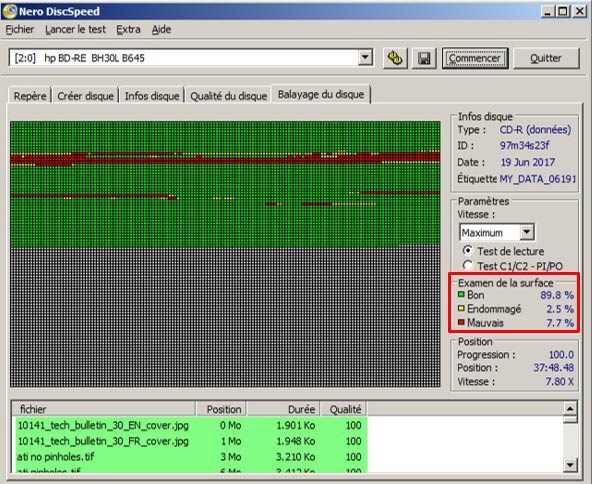 Recherche des fichiers illisibles sur le support