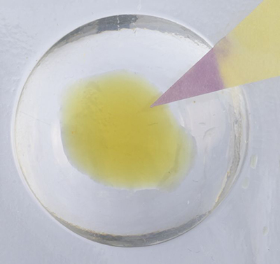 - Déposer une goutte ou deux de la solution de chlorure de sodium dans l'une des cavités d'une plaque à godets.