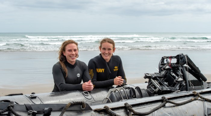 Des plongeurs-démineurs de l'Unité de plongée de la Flotte (Pacifique) mènent un entraînement en petite embarcation lors d'un déploiement Op REGULUS (Auckland, Nouvelle-Zélande, 2022).