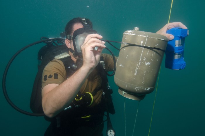 Au niveau national, l'identification, l'enlèvement et l'élimination des munitions militaires dans les espaces publics sont une responsabilité clé des FAC. Les plongeurs-démineurs sont les seuls spécialistes de la neutralisation des bombes au sein des FAC à être formés pour utiliser des techniques de neutralisation des explosifs et munitions (NEM) contre les munitions terrestres et les armes navales. Les plongeurs-démineurs de l'Unité de plongée de la Flotte (Pacifique) et de l'Unité de plongée de la Flotte (Atlantique) répondent en moyenne à 160-200 appels liés à la sécurité du public au Canada chaque année et sont chargés de neutraliser des munitions dont la taille varie de la grenade à main à la bombe de 500 livres. Les plongeurs-démineurs sont également déployés à l'étranger pour soutenir les opérations des FAC dans les zones où se trouvent des munitions non explosées.