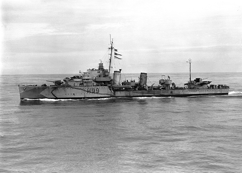 Le navire a été prêt à prendre la mer en 1936 sous le nom de HMS Hero, un destroyer de la classe « H ». Il a beaucoup servi dans la Royal Navy au cours de la Seconde Guerre mondiale : en effet, il a participé à la deuxième bataille de Narvik, en avril 1940, à l’évacuation de la Grèce et de la Crète, en avril et mai 1941, et à l’invasion de la Syrie, en juin 1941. En tant qu’unité de la Flotte de Méditerranée, il a aussi pris part à la bataille de Syrte en mars 1942 et, en mai et octobre de la même année, il a contribué à couler deux sous-marins allemands.