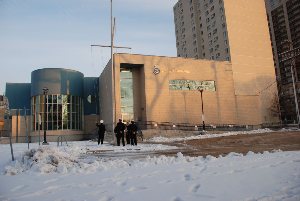 En février 1923, la Marine proposa au secrétaire adjoint de la Great West Life Assurance Company le défi suivant : former une unité de Réserve navale à Winnipeg (Manitoba). Le défi fut accepté, et 3 semaines plus tard, la Réserve navale commençait à s’implanter. Un petit bureau et une salle légèrement plus grande furent acquis pour la Marine de Winnipeg au Manège militaire McGregor. Le 1er mai, plus de 50 réservistes avaient été recrutés. Le 22 avril 1924, le pavillon blanc (White Ensign) flotta pour la première fois en sol manitobain. Le 1er novembre 1941, l'unité fut mise en service sous le nom de NCSM Chippawa, en l’honneur du navire qui transporta un escadron britannique à la bataille du lac Érié, le 10 septembre 1813, contre les Américains. Le NCSM Chippawa apporta sa plus grande contribution durant la Seconde Guerre mondiale, recrutant 297 officiers et 7 567 hommes, ainsi que le deuxième contingent de SFMRC (Service féminin de la Marine royale du Canada) au pays. Malgré son éloignement des côtes, le NCSM Chippawa devint la troisième source du personnel naval au Canada.