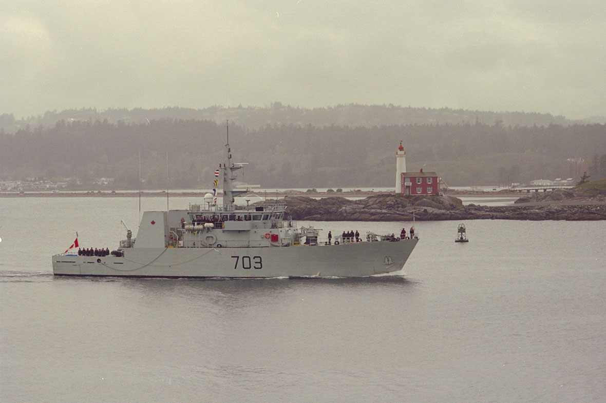 En mai 1992, un contrat fut octroyé aux chantiers Halifax Shipyards Ltd., Halifax (Nouvelle-Écosse), pour la construction de douze navires de défense côtière (NDC) de classe Kingston. Conçus selon des normes commerciales, ces bâtiments étaient destinés à plusieurs fonctions : patrouille côtière, dragage de mines, application de la loi, surveillance et intervention antipollution, recherche et sauvetage. Ils furent dotés d’équipement modulaire adapté à ces diverses tâches.