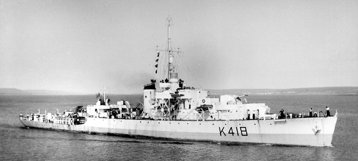 - Armement : deux canons de 4 pouces (102 mm) (1 x II), un canon de 12 livres (5,45 kg), huit canons de 20 mm (4 x II), un mortier Hedgehog et grenades sous-marines.