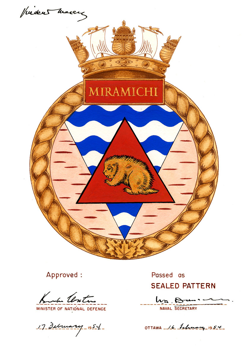 Construit par le chantier naval Victoria Machinery Depot, le NCSM Miramichi fut mis en service le 29 octobre 1957 et affecté au Groupe d’entraînement (Pacifique), où il resta jusqu’à son désarmement, le 16 décembre 1998.
