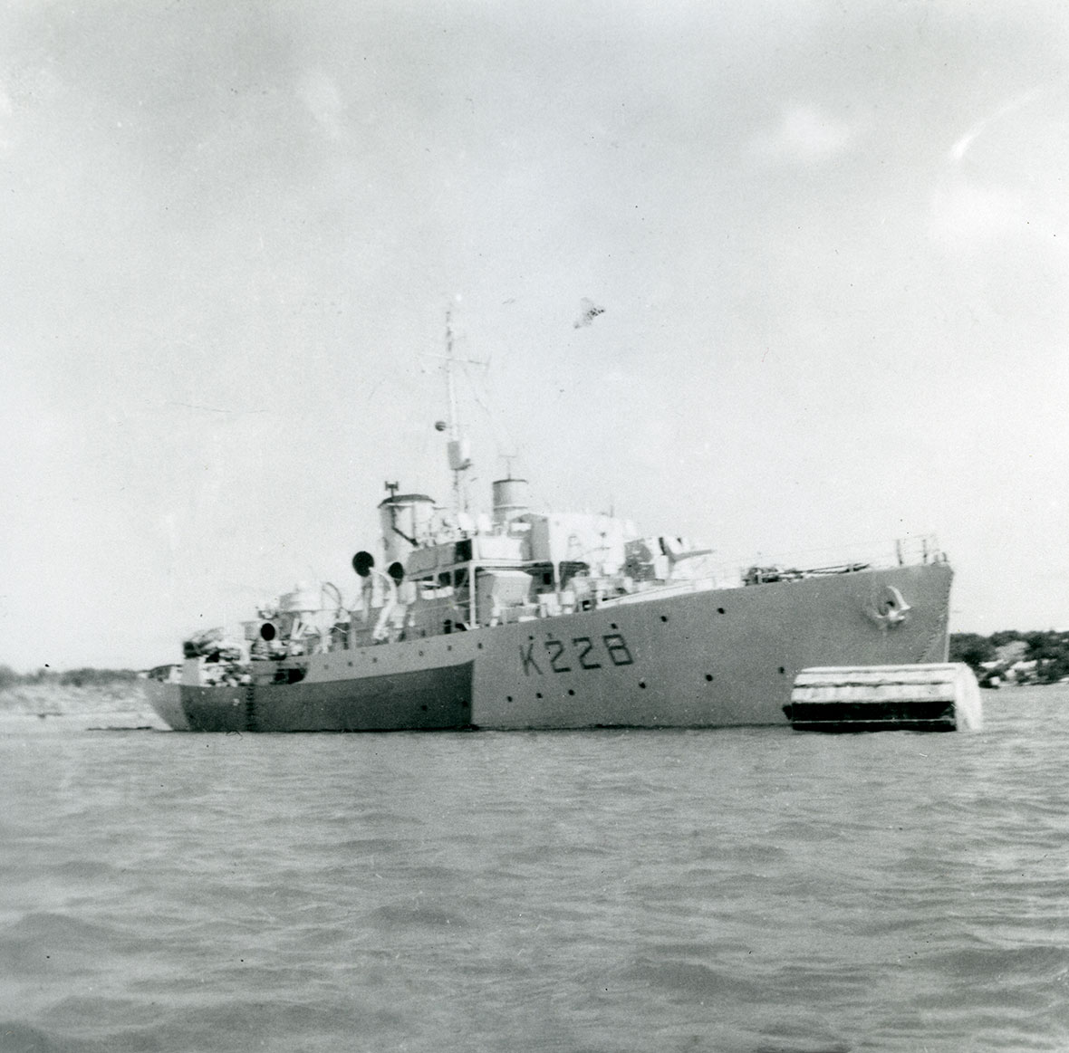 - Armement : un canon de 4 pouces (102 mm), un canon de 2 livres (0,9 kg), deux canons de 20 mm (2 x I), un mortier Hedgehog et grenades sous-marines.