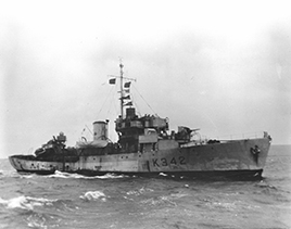- Armement : un canon de 4 pouces (102 mm), un canon de 2 livres (0,9 kg), deux canons de 20 mm (2 x I), un mortier Hedgehog et grenades sous-marines.