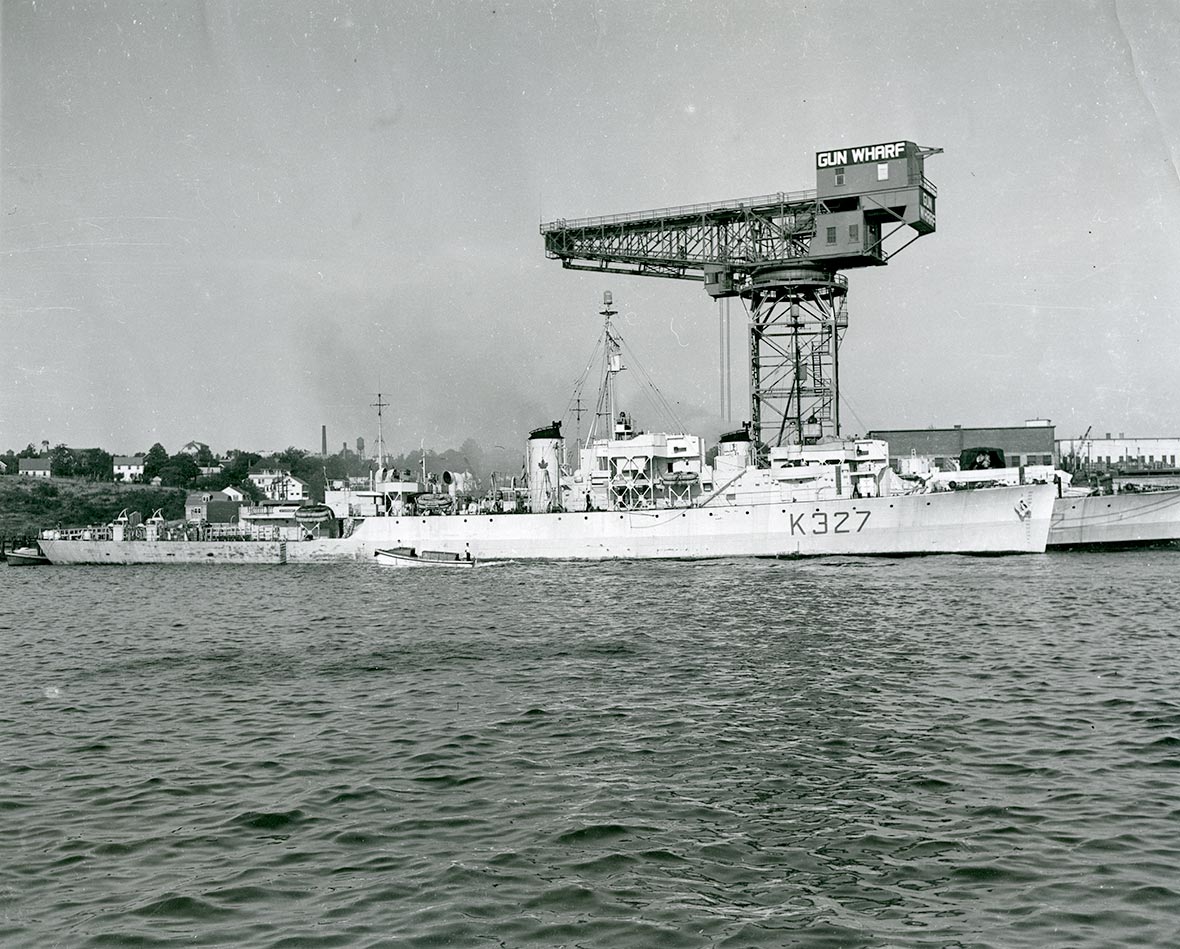 Le NCSM Stormont quitta Londonderry le 19 décembre 1944 pour Halifax et entra en carénage à Shelburne, Nouvelle Écosse. Les travaux, entamés en juin, furent suspendus le 20 août, et la frégate fut désarmée le 9 novembre 1945.