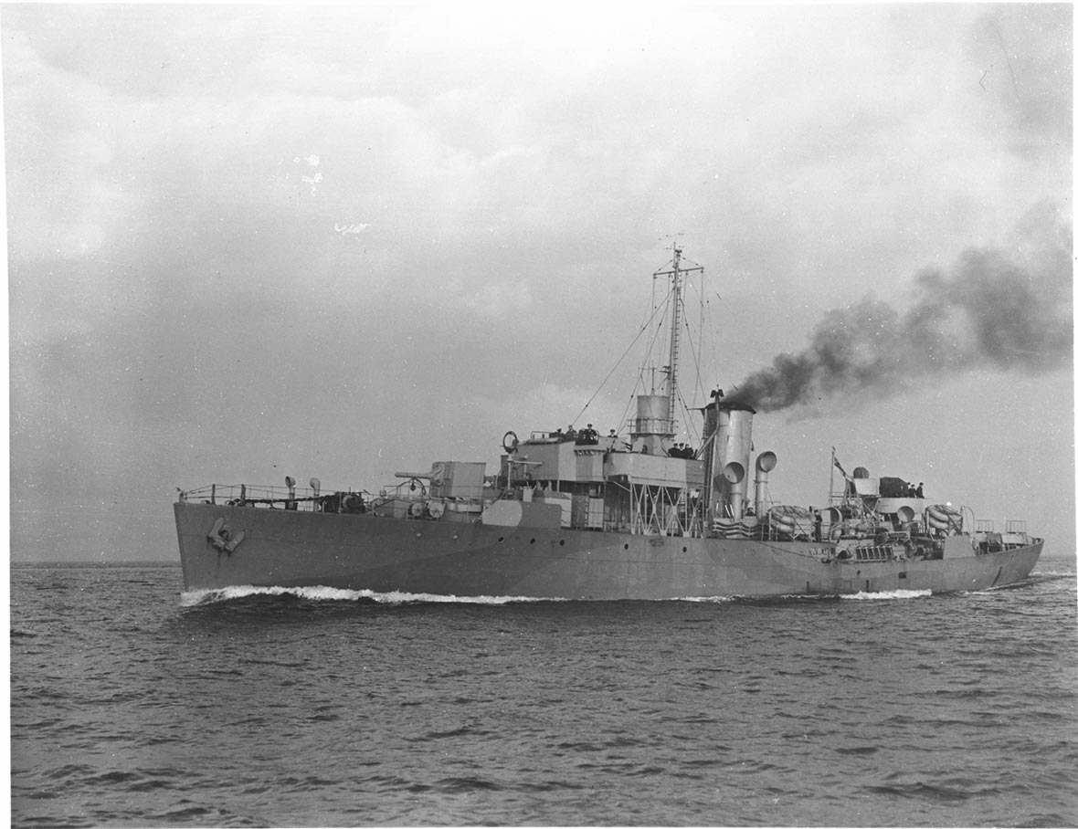 - Armement : un canon de 4 pouces (102 mm), un canon de 2 livres (0,9 kg), deux canons de 20 mm (2 x I), un mortier Hedgehog et grenades sous-marines