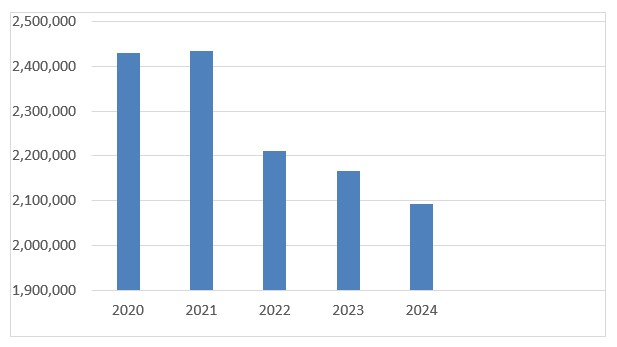 Comparaison annuelle de la CCMTDN 2020 (2 433 890 $), 2022 (2 211 833 $), 2023 (2 167 096 $), 2024 (2 093 290 $) et 2025 (1 647 544.30 $).