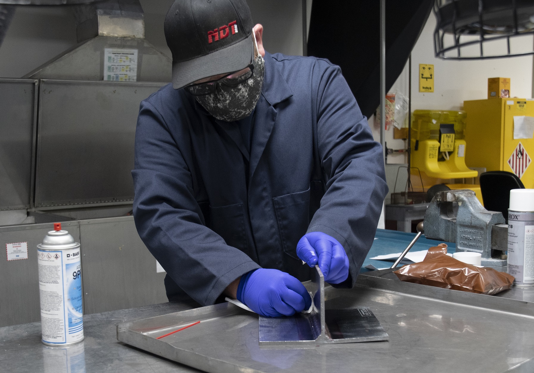 « Les techniciens et exploitants formés sur les END utilisent des techniques d’essais non destructifs lors de la maintenance de première et de deuxième ligne des aéronefs pour mettre à l’essai le métal et les matériaux à la recherche de contraintes, de fissures, de corrosion et d’autres défauts qui pourraient rendre un aéronef inutilisable ou dangereux », explique le sgt Smith. « Bien qu’il n’y ait pas d’inconvénients réels aux essais non destructifs dans leur ensemble, chaque méthode comporte des limites. Lorsqu’un défaut est détecté à l’aide d’une méthode, il est recommandé d’utiliser une autre méthode pour confirmer le type de défaut et son étendue. »