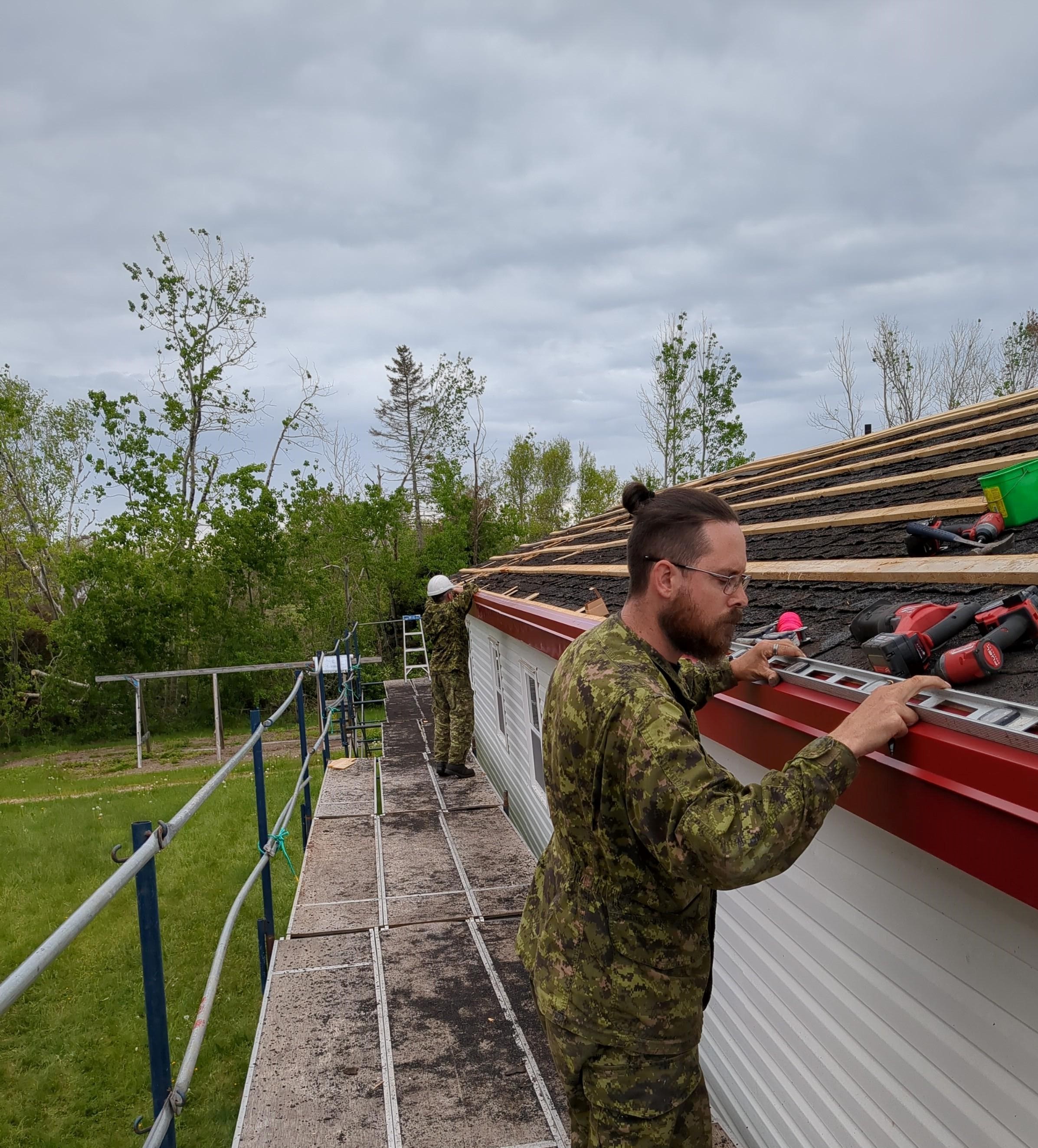 Le 14e Escadron du génie construction participe à divers projets communautaires pour le compte d’organismes à but non lucratif dans le cadre de son programme de formation en cours d’emploi pour entraîner son personnel. Ces projets nécessitent souvent la collaboration de plusieurs groupes professionnels, ce qui favorise le travail d’équipe et renforce les relations positives avec les collectivités locales. Brule, Nouvelle-Écosse, 12 juin 2023.