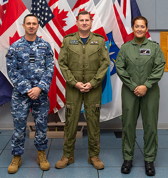Le major-général Denis O'Reilly, commandant adjoint de l'ARC, a accueilli au Canada ses homologues de la Royal Air Force, le vice-maréchal de l'air Suraya Marshall, et de la Royal Australian Air Force, le vice-maréchal de l'air Harvey Reynolds, afin de discuter des futurs domaines de coopération. Ils ont également visité la 22e Escadre North Bay, qui est responsable de la surveillance, de l'identification, du contrôle et de l'avertissement pour la défense continentale.