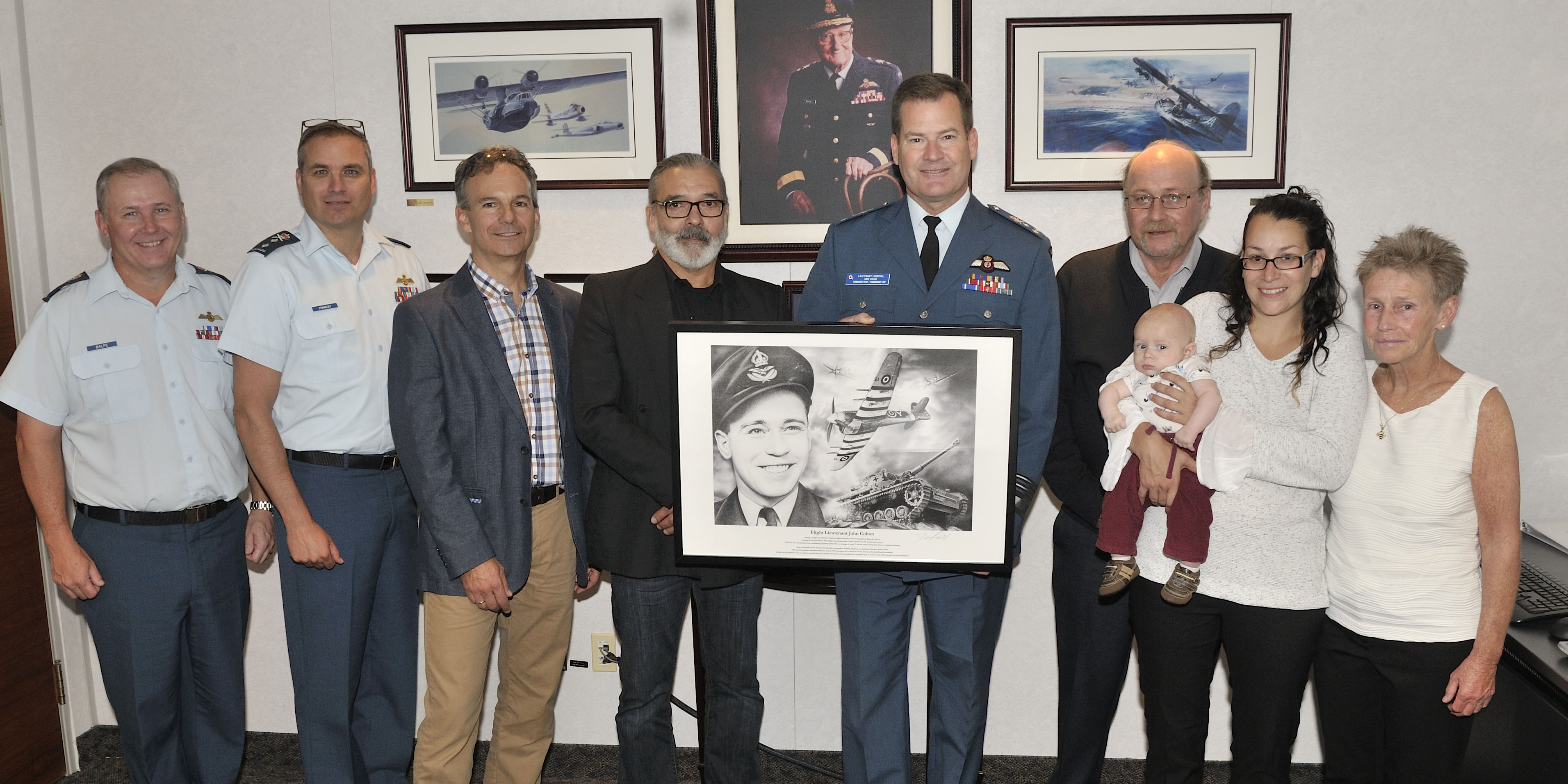 Le 5 octobre 2017, M. Lacroix et des membres de la famille Colton se sont réunis au Quartier général de l’ARC, à Ottawa, pour remettre au lieutenant-général Mike Hood, commandant de l’ARC, une giclée à tirage limité d’un portrait au crayon de John Colton. Trois générations de Colton étaient présentes : la fille et le fils du capitaine d’aviation Colton, Nancy et John, ainsi que la fille et le petit-fils de ce dernier, Stephanie et Brian, âgé de trois mois.
