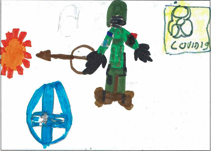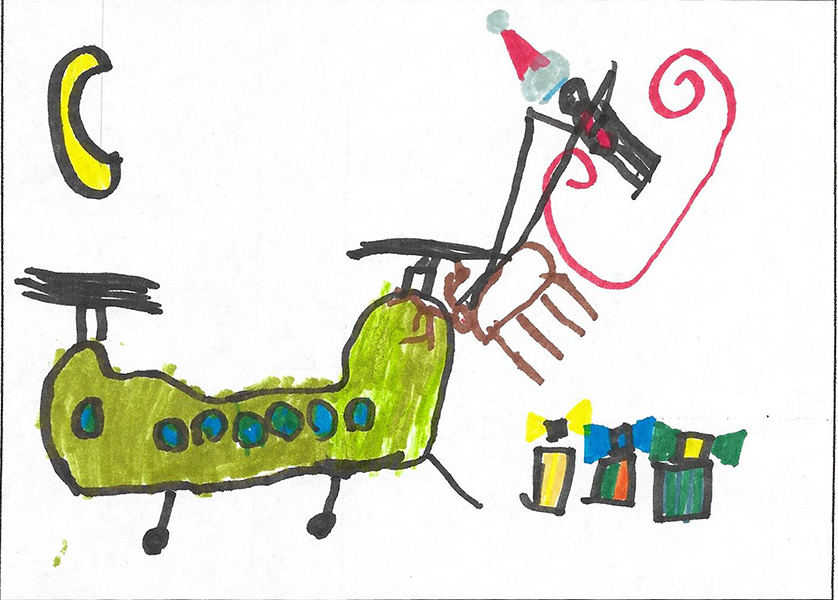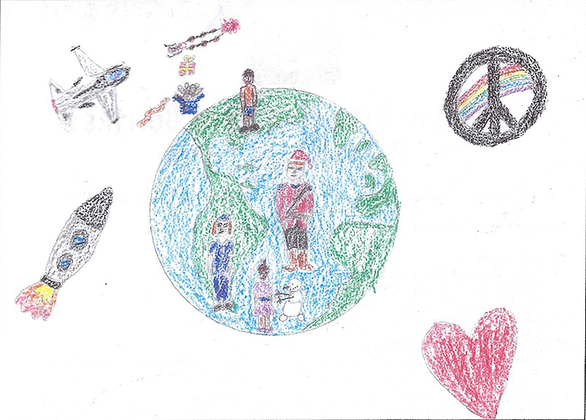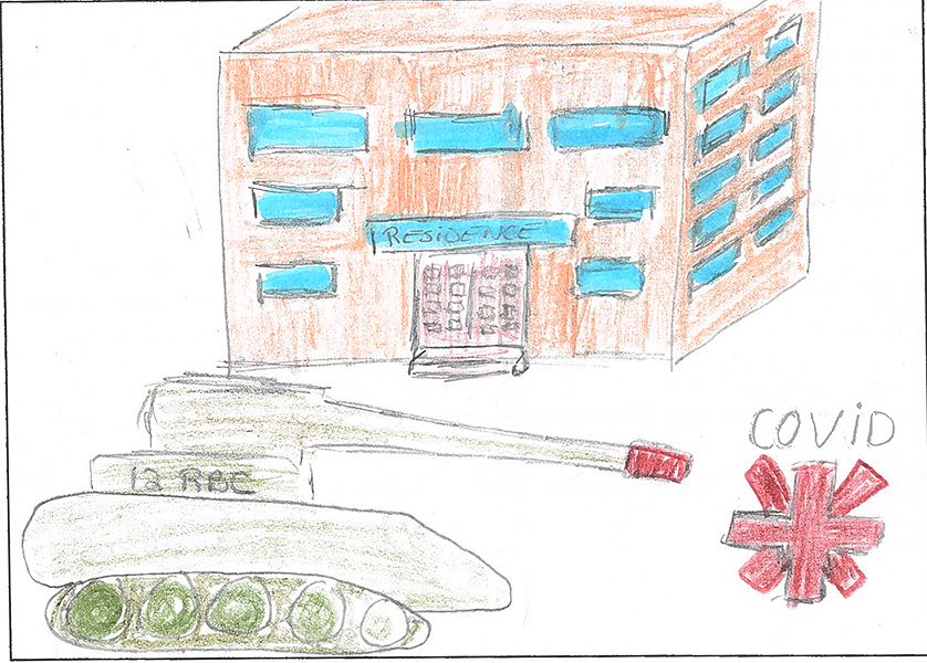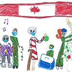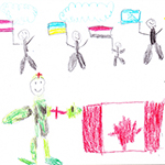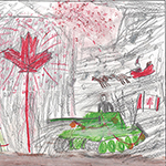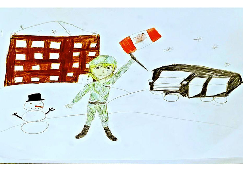 Josianne Henao Alcendra (6) : Mon dessin représente les services rendus par les militaires. Ils aident les gens a gardé la paix dans les airs dans l’océan et sur terre partout au Canada et dans le monde. Merci..