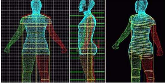 Vue arrière, de côté et de face de l’extraction de mesures par balayage 3D.