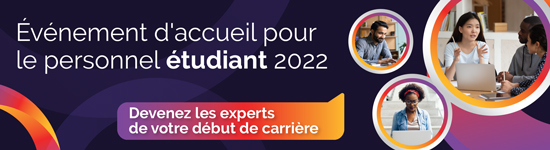 Soyez des nôtres dans le cadre de l’événement d’accueil pour le personnel étudiant organisé par l’École de la fonction publique du Canada (EFPC) qui aura lieu le 9 juin 2022!