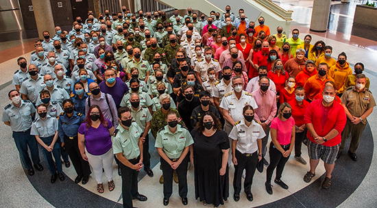 La Saison de la Fierté et la Semaine de la Fierté à la fonction publique sont des moments importants pour nous rappeler notre engagement à créer un espace plus sûr et positif en nous soutenant mutuellement et en célébrant la diversité au Canada et dans l’Équipe de la Défense. Ainsi, au cours de cette dernière semaine, divers événements ont eu lieu partout au pays pour promouvoir et renforcer la diversité, l’inclusion et la fierté des communautés LGBTQ2+ dans la fonction publique fédérale et parmi les militaires actifs. Notamment, durant la levée du drapeau de la Fierté au QGDN Carling, nous avons mis en valeur la solide relation civilo-militaire unique au MDN et aux FAC et reflétée dans l’Organisation consultative de la Fierté de l’Équipe de la Défense (OCFED) en formant un arc-en-ciel humain!