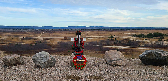 Monument commémoratif du jour du Souvenir créé par un membre du 21e Régiment de guerre électronique qui vise à honorer les personnes tombées au champ d’honneur. Celui-ci a vu sur les plaines de la Mattawa, depuis Clement Hill, à la BFC Petawawa.