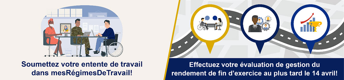 Si vous ne l'avez pas encore fait, veuillez soumettre votre entente de travail dans l'application mesRégimesDeTravail (MRT) dès que possible.