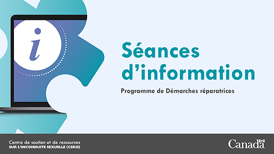 Le Centre de soutien et de ressources sur l’inconduite sexuelle (CSRIS) a organisé des sessions d'information sur son programme de Démarches réparatrices (DR). Si vous êtes un membre du règlement du recours collectif sur l'inconduite sexuelle des FAC et du MDN et avez exprimé un intérêt pour le programme de DR, ou si vous êtes un membre de l'Équipe de la Défense qui souhaite participer au programme en tant que personne représentante de la Défense, ces sessions d'information sont faites pour vous.