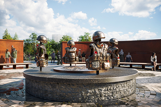 Le décision récente du gouvernement de choisir le design de l’équipe Stimson pour le monument national repose sur les commentaires des vétérans, de leurs familles et de ceux et celles qui ont pris part à la mission du Canada en Afghanistan. S’appuyant sur des éléments de guérison du concept de la roue médicinale, ce concept prend la forme d’un espace circulaire et sacré de sécurité, une « base » de réflexion, de mémoire et de contemplation. Un portail intérieur fait le parallèle avec l’espace de sécurité que l’on trouve dans une base d’opérations avancée. C’est dans cet endroit que l’on rend hommage à ceux et celles qui sont tombés au combat.