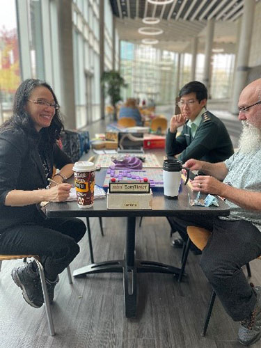 Victor Chiasson et Capitaine Daniel Zhao jouent contre la directrice du club de Scrabble d’Ottawa, Heidi Robertson