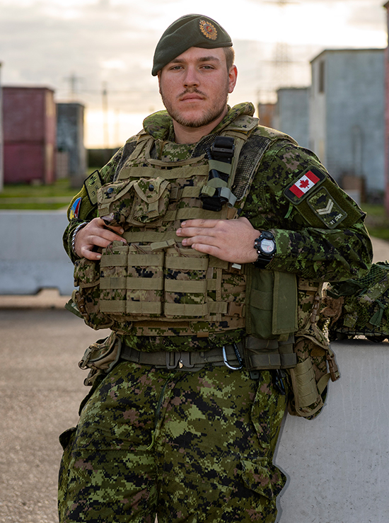 « Je me suis enrôlé dans les Forces armées canadiennes (FAC) parce que je ne me voyais pas dans un emploi normal de neuf à cinq. Je voulais un emploi qui m’apporterait un peu d’excitation et un nouveau défi chaque jour », déclare le caporal (Cpl) William Hanley, un sapeur du 31e Régiment de génie du combat (The Elgin’s) de Waterloo, en Ontario. Le Cpl Hanley a été déployé dans le cadre de la rotation 16 de l’Op UNIFIER en tant que membre de l’élément d’instruction du Royaume-Uni (UKTE) de la Force opérationnelle interarmées – Ukraine.