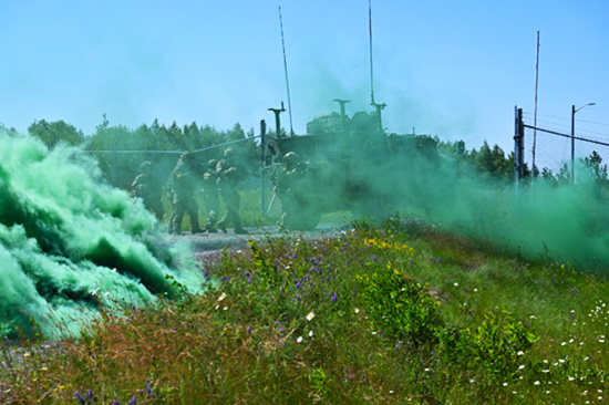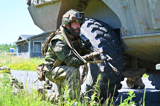« Les tâches que nous accomplissons durant l’exercice visent à simuler ce que nous ferons en Lettonie », a expliqué le capitaine Cole MacEachern du Prince Edward Island Regiment. « Nous examinons et nous exécutons des tâches comme les escortes de convois, la sécurité de point vital, les postes de contrôle des véhicules et différentes tâches de sécurité pour protéger les ressources de la Brigade, notamment des drones, des véhicules de guerre électronique et d’autres groupes de cueillette du renseignement. »