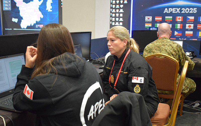 Cette approche proactive a été au centre des activités lors de l’exercice APEX 2025, tenu à Séoul, en Corée du Sud, du 8 au 11 septembre. L’exercice multinational cyber a réuni des opérations techniques sur le terrain et des simulations de haut niveau en matière de politique. À titre de responsable juridique de l’équipe stratégique canadienne, la capitaine de frégate Aubrey-Horvath a travaillé en étroite collaboration avec son homologue d’Affaires mondiales Canada afin d’offrir un soutien juridique couvrant l’ensemble des objectifs de COMCYBERFAC.