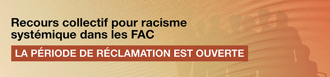 La période de réclamation est en cours dans le cadre du recours collectif pour racisme systémique au sein des FAC