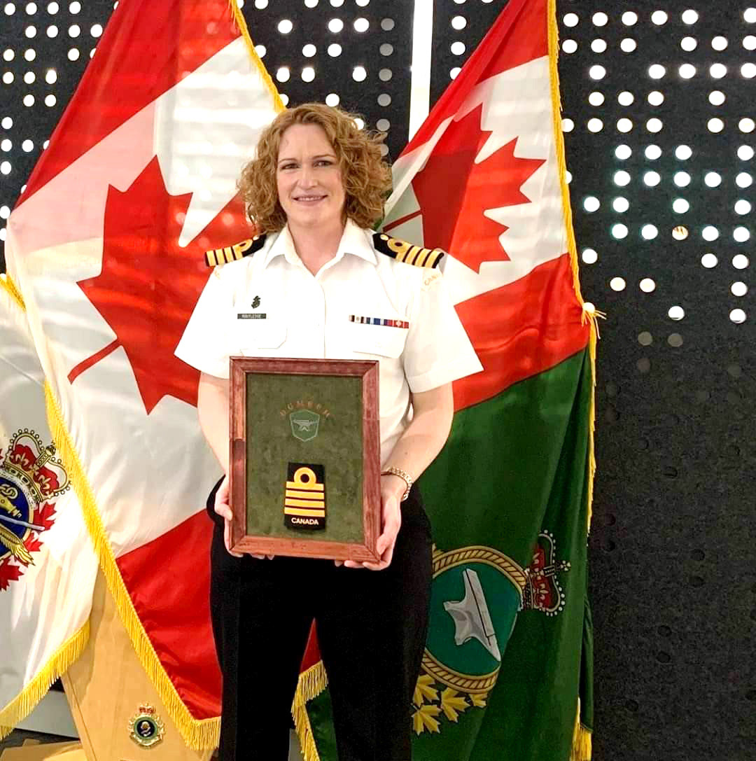 Elle ajoute que le Commodore (Cmdre) Josée Kurtz, qui était son commandant en second quand elle-même était chef de service du Navire canadien de Sa Majesté (NCSM) Ville de Québec, et qui a été la première femme à commander un groupe maritime permanent de l’OTAN, lui a donné l’envie de poursuivre ses propres buts.