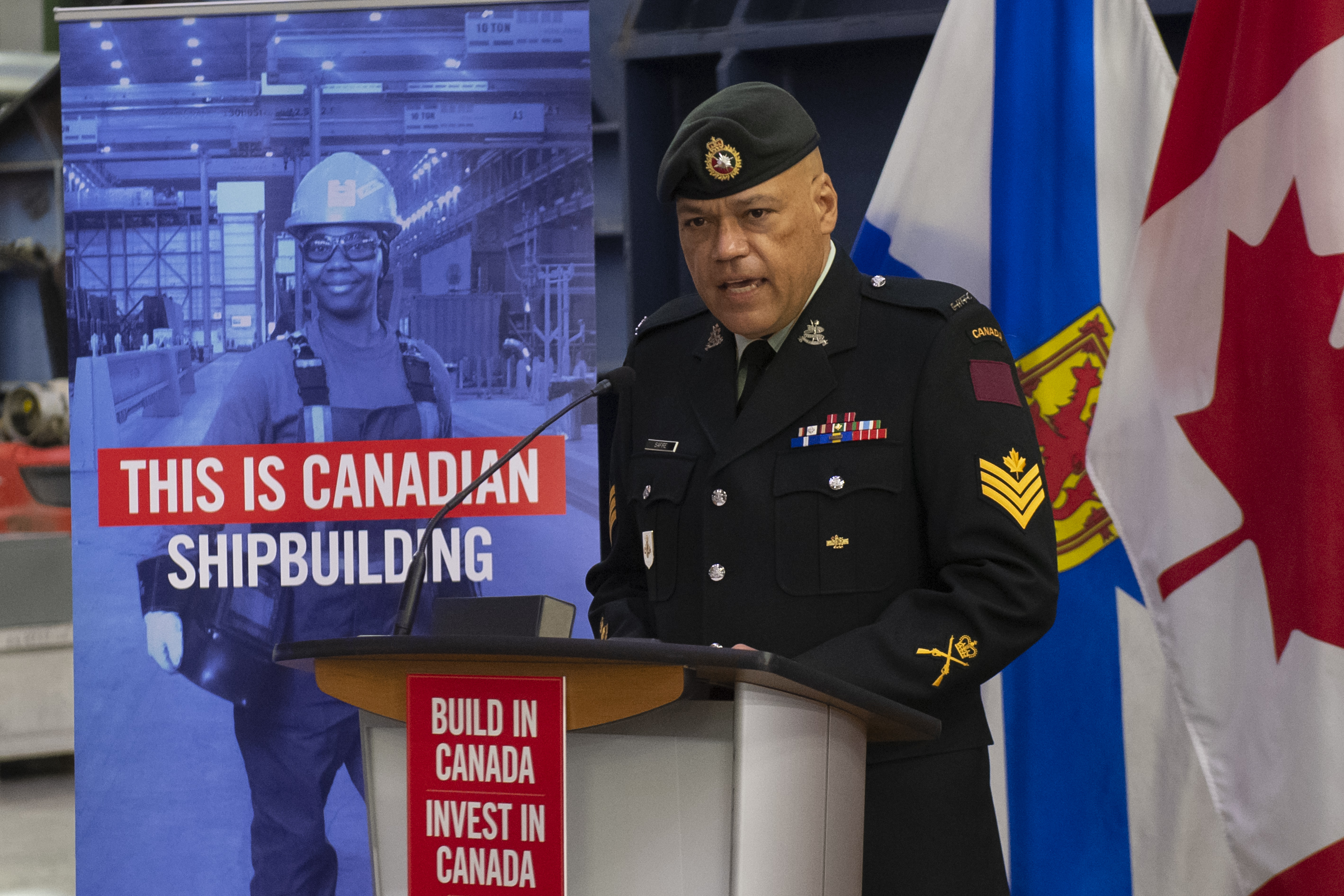 L’entrerpise de contruction navale a invité des représentants de la East Preston Empowerment Academy, une organisation de la région d’Halifax qui offre des programmes d’apprentissage de métiers et d’autres possibilités d’éducation dans cette communauté néo-écossaise à prédominance africaine, à assister à la pose de la quille. Étaient également présents le contre-amiral (cam) Brian Santarpia, commandant des Forces maritimes de l’Atlantique et de la Force opérationnelle interarmées de l’Atlantique (FMAR[A]/FOIA), le président d’Irving Shipbuilding Kevin Mooney, le ministre des Affaires afro-néo-écossaises Tony Ince, ainsi que des représentants des équipes des FMAR(A) et d’Irving.