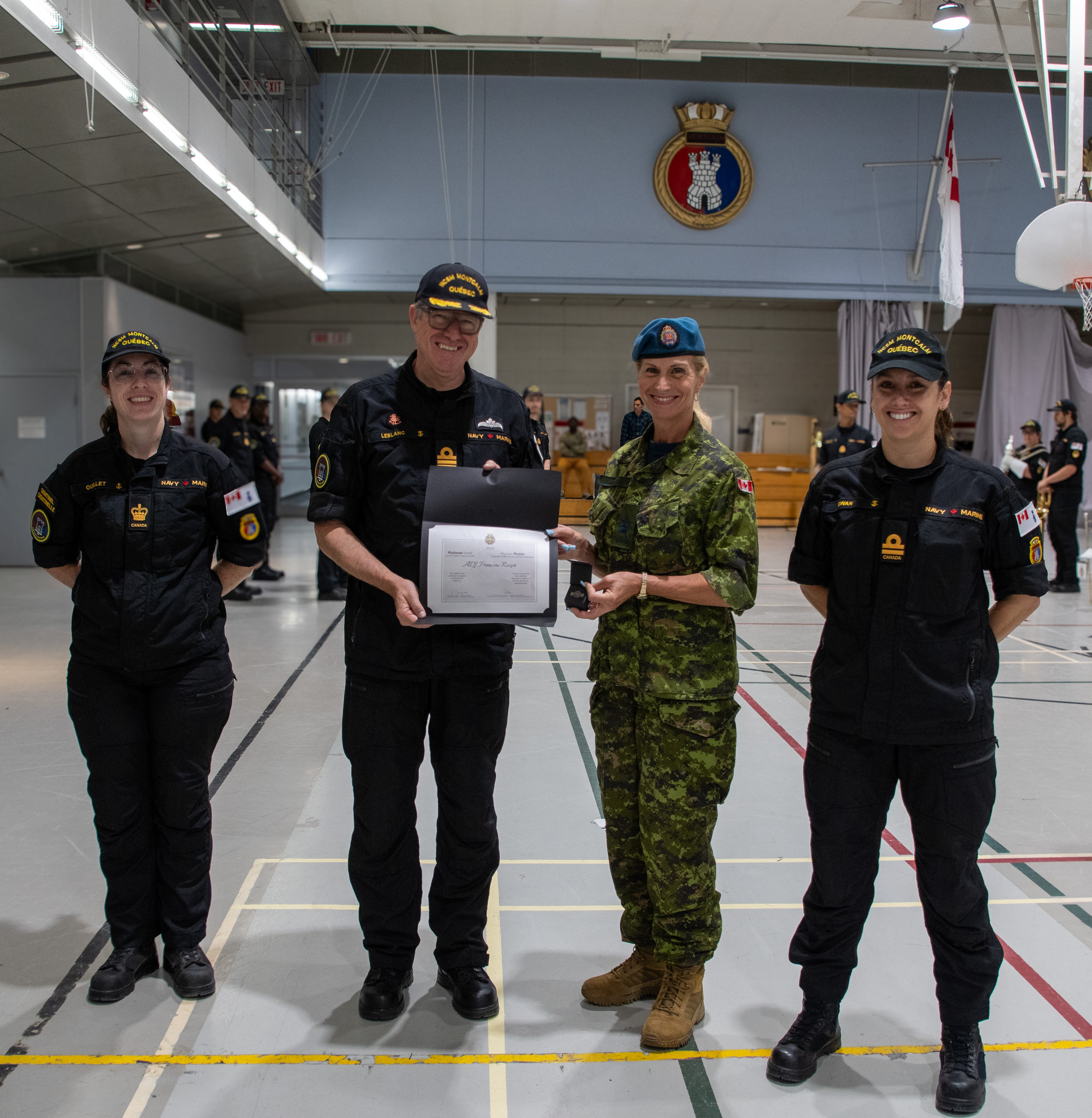 Son dévouement a récemment été reconnu comme un moment marquant lorsqu’elle a reçu la troisième agrafe pour sa Décoration des Forces canadiennes (CD) et sa troisième récompense Platine dans le cadre du test FORCE, un double jalon célébré par une ovation bien méritée de l’équipage du NCSM Montcalm.