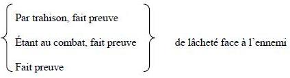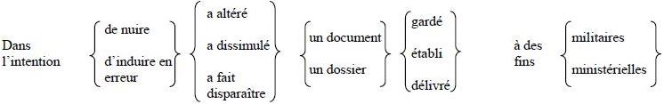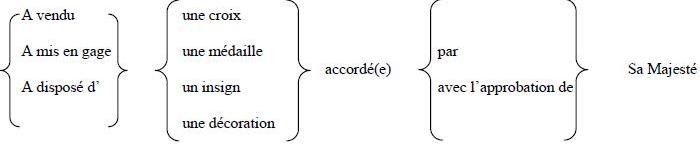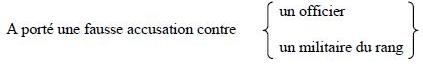 - Porter illégitimement un uniforme, des insignes de grade, des rubans ou médailles auxquels l'inculpé n'a pas droit;