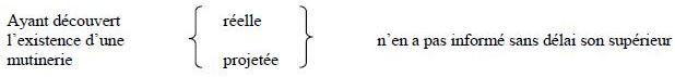 Détails : En ce que, le (date), à (indiquez le lieu de l'infraction), il a, sans excuse légitime, braqué son fusil sur (numéro, grade et nom).