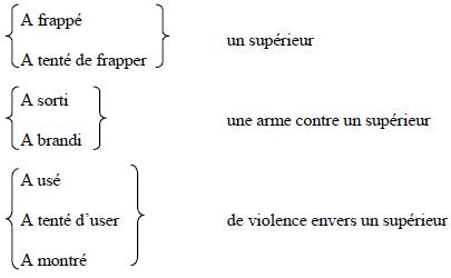 Détails : En ce que, le (date), à (indiquez le lieu de l'infraction), il a lancé de l'acide sulfurique à la figure de (numéro, grade et nom).