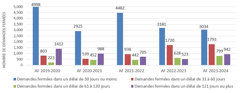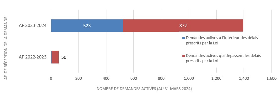 Demandes ouvertes dépassant les délais prescrits par la Loi en date du 31 mars 2024 |