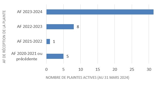 Exercice financier au cours duquel les plaintes ouvertes ont été reçues par institution |
