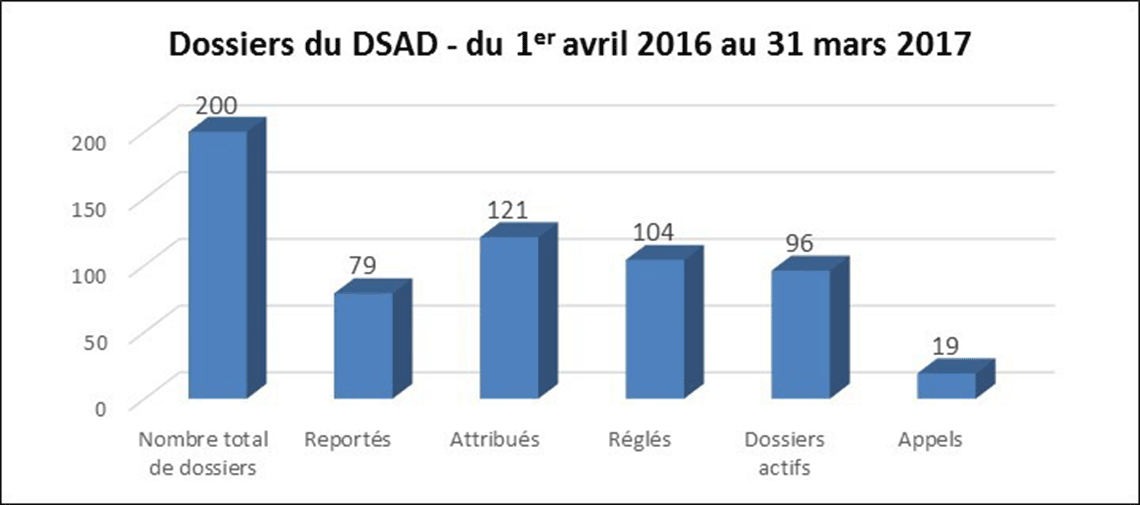 25. Aux termes de la Loi sur la défense nationale, le DSAD peut embaucher un avocat civil aux frais de l’État pour représenter les accusés dans les causes où, après avoir reçu une demande de représentation de la part du SAD, aucun avocat militaire n’est en mesure de les représenter. Cette situation résulte principalement d’un conflit d’intérêts possible ou réel, qui met souvent en cause la représentation d’un coaccusé par un avocat du SAD. Il peut aussi y avoir d’autres raisons. Au cours de la période visée par le présent rapport, le directeur a engagé des avocats civils pour représenter des accusés dans sept affaires. Trois d’entre elles ont été portées devant la cour martiale afin qu’une décision soit rendue, et quatre ont été retirées par la poursuite avant le procès.