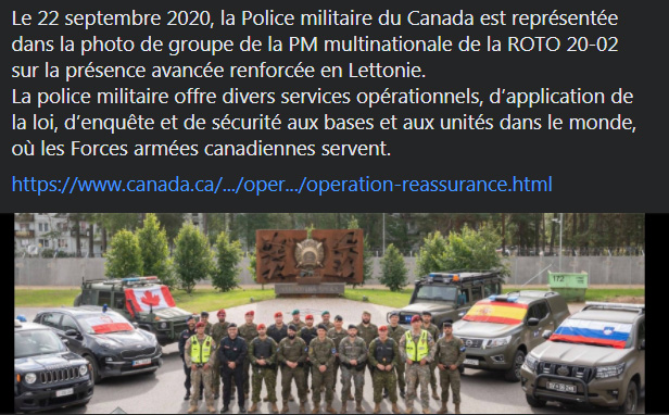 - Le Quartier général du Groupe de la Police militaire des Forces canadiennes est situé à Ottawa, en Ont.