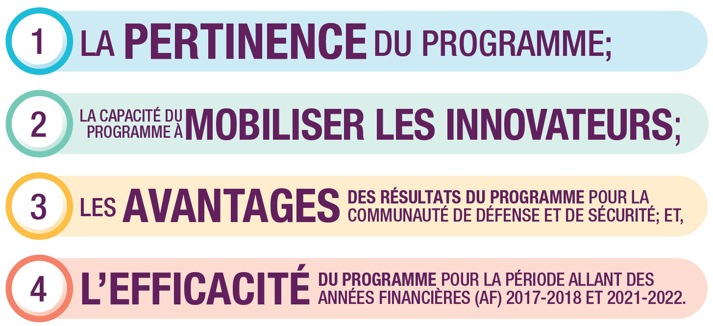 Les constatations de l’évaluation démontrent que le programme IDEeS demeure pertinent dans l’environnement mondial de défense et de sécurité en évolution et qu’il a efficacement mobilisé les petites et moyennes entreprises ainsi que le milieu universitaire, cultivant ainsi davantage ces réseaux pour renforcer l’écosystème de l’innovation au Canada. Le programme a efficacement facilité la progression d’un éventail de solutions pour régler les défis en matière de défense et de sécurité et a obtenu des niveaux variables de réussite dans la remise de son financement alloué tout au long de la période d’évaluation.