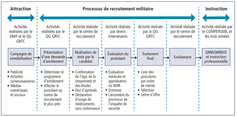 Figure 5. Processus de recrutement militaire. Cette figure décrit les étapes du processus d’attraction