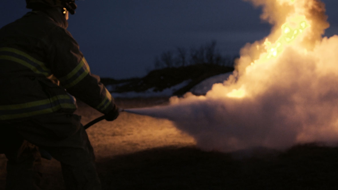 Nous allumons des feux avec du carburéacteur. Mais parfois c’est difficile à contrôler alors nous devons nous assurer que les paramètres de jalonnement sont extrêmement rigoureux. Je suis Pierre Muscat-Drago. Je détiens le grade de major dans les Forces armées canadiennes. Je suis l’instructeur-chef de l’escadron d’entraînement à la lutte contre les incendies ici, à l’École des pompiers et de la défense CBRN des Forces canadiennes.