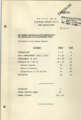 Rapport basé sur des sources allemandes portant sur les défenses de l’Allemagne pendant la Seconde Guerre mondiale. Ce rapport porte sur la côte normande près de Courseulles et Saint-Aubin. Voici l’un des rapports déclassifiés du Quartier général de l’Armée (QGA).